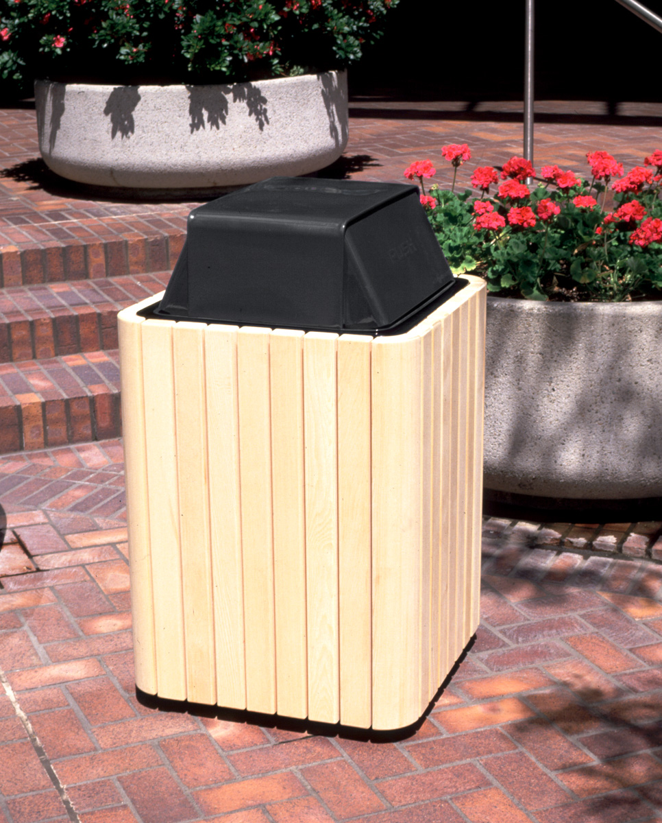 2107-HT Hamper Top Litter Container Standard Features: Frame of black powder-coated steel Top of stainless steel or black powder-coated steel Alaska yellow cedar surround Surface mount For permanent or moveable applications Includes 36-gallon plastic liner Options: Purpleheart hardwood or 100% post-consumer recycled HDPE plastic slats Downloads: View: 2107-DT Dome Top Litter Container Standard Features: Frame and top of black powder-coated steel Alaska yellow cedar surround Key-locking top Surface mount For permanent or moveable applications Includes 36-gallon plastic liner Options: Frame and top color Purpleheart hardwood or 100% post-consumer recycled HDPE plastic slats Downloads: View: 2107-AT Ash/Dome Top Litter Container Standard Features: Frame and top of black powder-coated steel Alaska yellow cedar surround Key-locking top Surface mount For permanent or moveable applications Includes 36-gallon plastic liner Options: Top color Purpleheart hardwood or 100% post-consumer recycled HDPE plastic slats Downloads: View: 2107-FT Flat Top Litter Container Standard Features: Frame and top of black powder-coated steel Alaska yellow cedar surround Key-locking top Surface mount For permanent or moveable applications Includes 36-gallon plastic liner Options: Frame and top color Purpleheart hardwood or 100% post-consumer recycled HDPE plastic slats Downloads: View: |