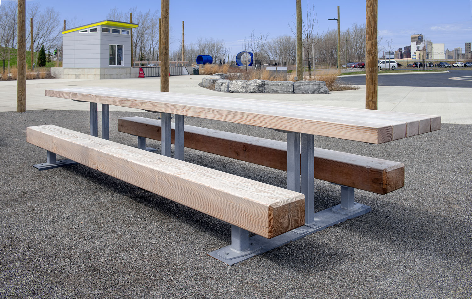 Picnic Table Standard Features: Seats are 8x12 F.O.H.C. Douglas fir Top is 4x6 F.O.H.C. Douglas fir Powder-coated steel frame choose from ten standard colors. Options: Various continuous lengths up to 26' or longer. Over 200 designer powder-coating colors Downloads: View: |
